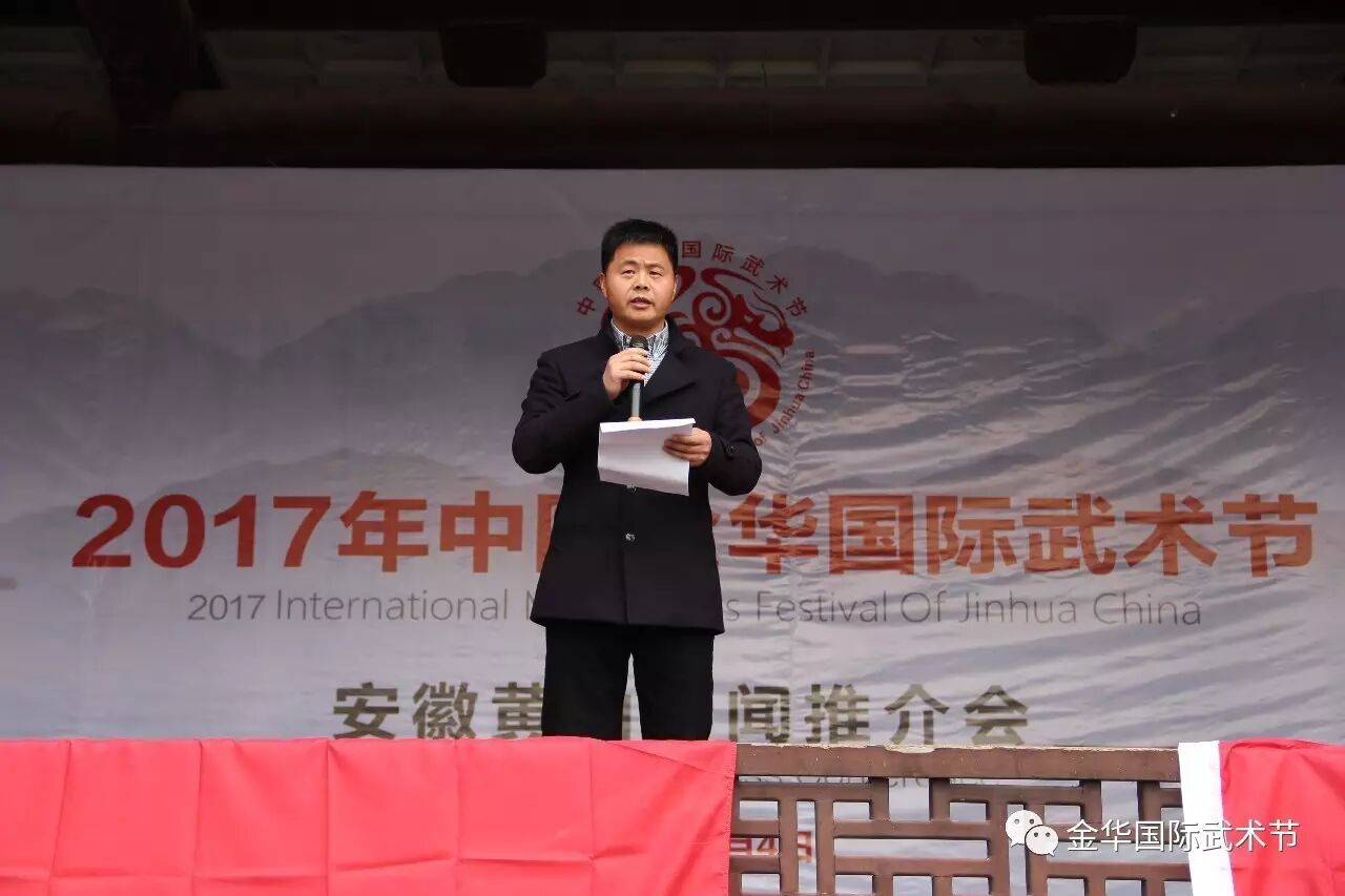 推介会上金华市体育局副局长钱寿坤、黄山市武术协会会长舒云泽分别致辞。