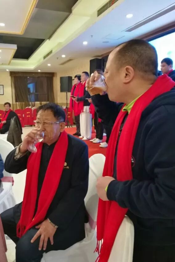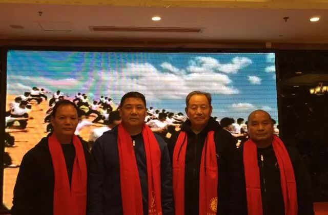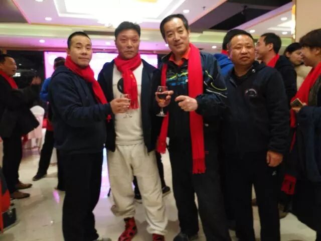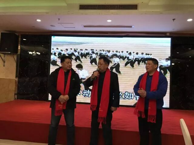 金华市健艺体育发展有限公司的董事长何建一、副总裁李宏卫、金忠方、财务总监张丽君共同上台代表婺州武学堂向全体参加晚会的朋友拜个早年,衷心感谢每位支持和关心帮助健艺体育公司成长的领导和朋友新年快乐,身体健康,事事如意!