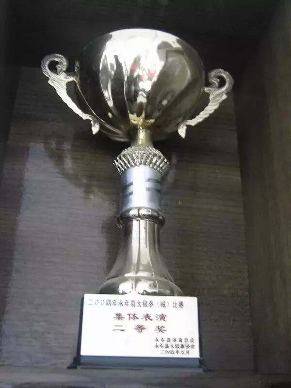 2002年,获中国永年国际太极拳第九届交流大会“功勋杯”奖,学校参加获团体一等奖,金牌11枚,银牌8枚,铜牌三枚。