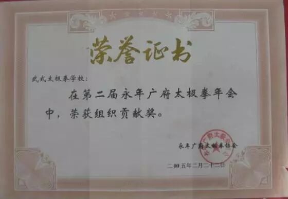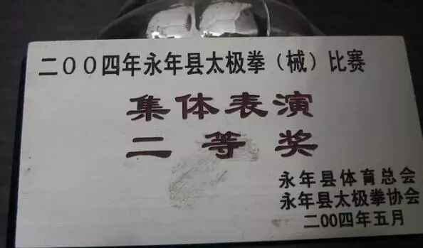 2006年,参加国家体育总局在邯郸永年举办的为纪念24式简化太极拳推广50周年暨邯郸永年国际太极拳交流大会,市县体育局作为太极名家向大会组委会推荐,获大会颁发的纪念铜牌及其它纪念品。