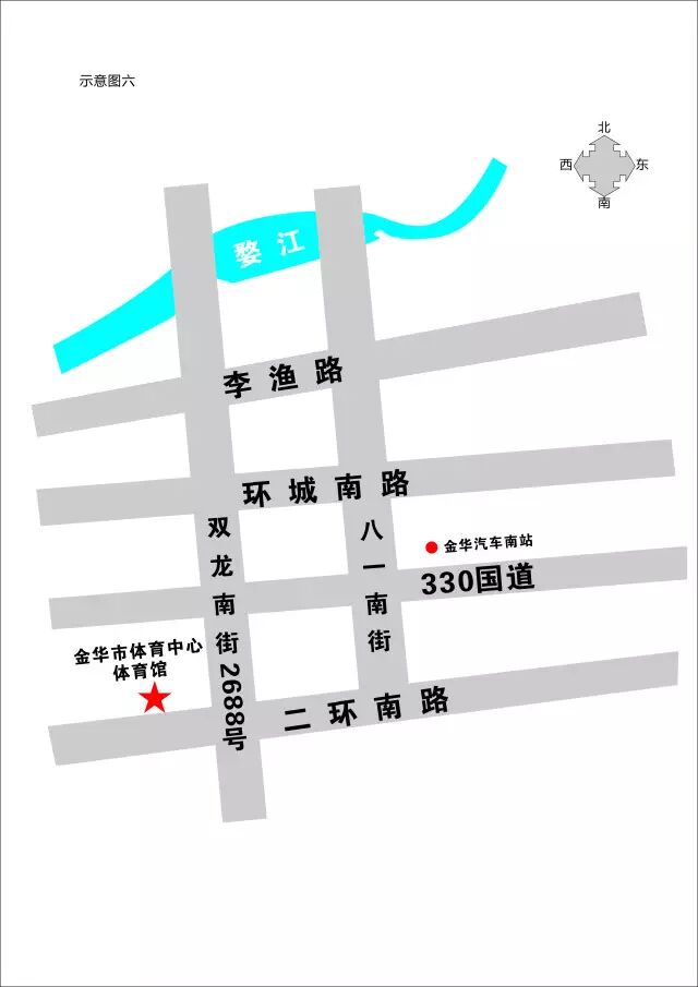 比赛地点确定在“浙江省金华市体育中心体育馆”(双龙南街2688号)进行。详见比赛场地示意图