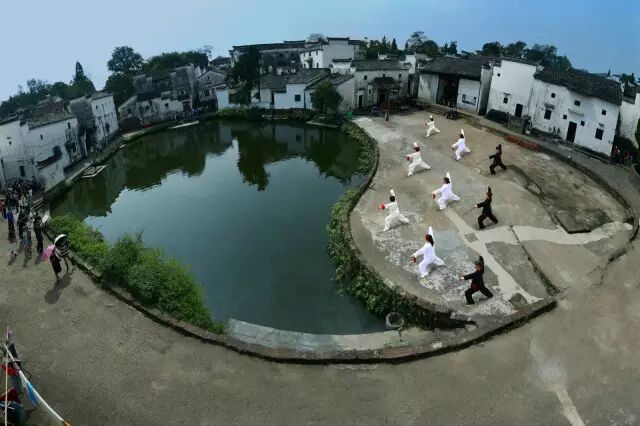 金华国际武术节组委会一行来到黄山市,在湖边古村落古戏台举行新闻推介会。