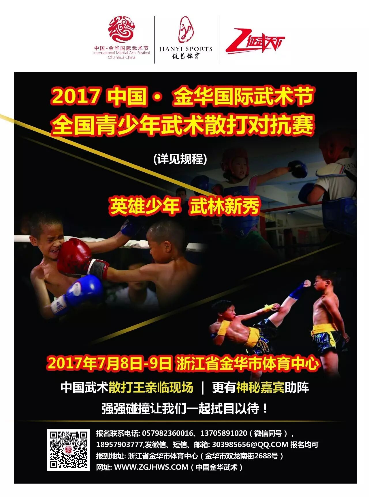 2017中国·金华国际武术节携手征武天下国际职业功夫格斗联赛于7月9日走进金华市体育馆。该赛事做为金华国际武术节闭幕式的重点戏。中外拳手对决、强强对碰。