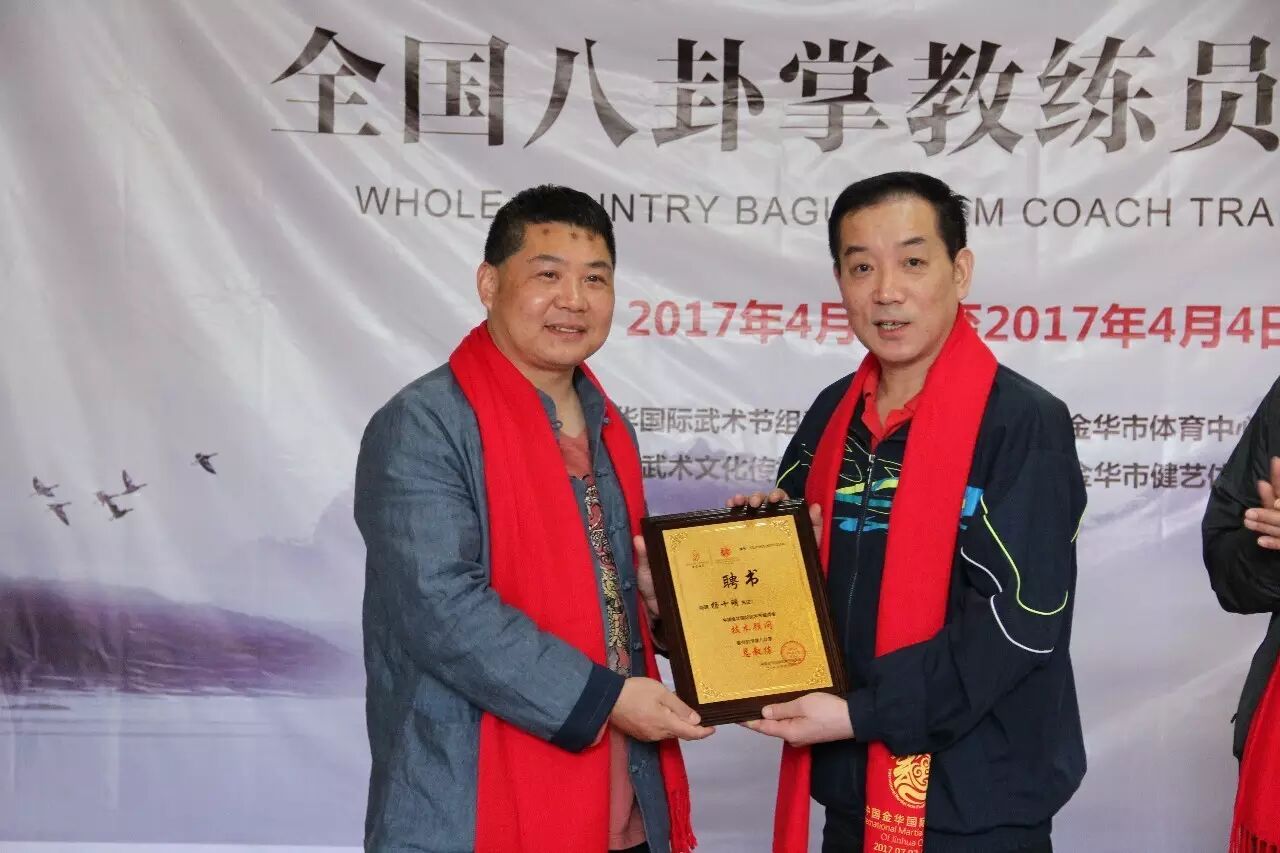 由金华市体育局、北京子鸣武术文化传播中心、金华市体育中心、金华市健艺体育发展有限公司共同举办的中华武术婺州武学堂全国八卦掌教练员培训班于2017年3月31--4月4日在武义县武阳拳社举办。