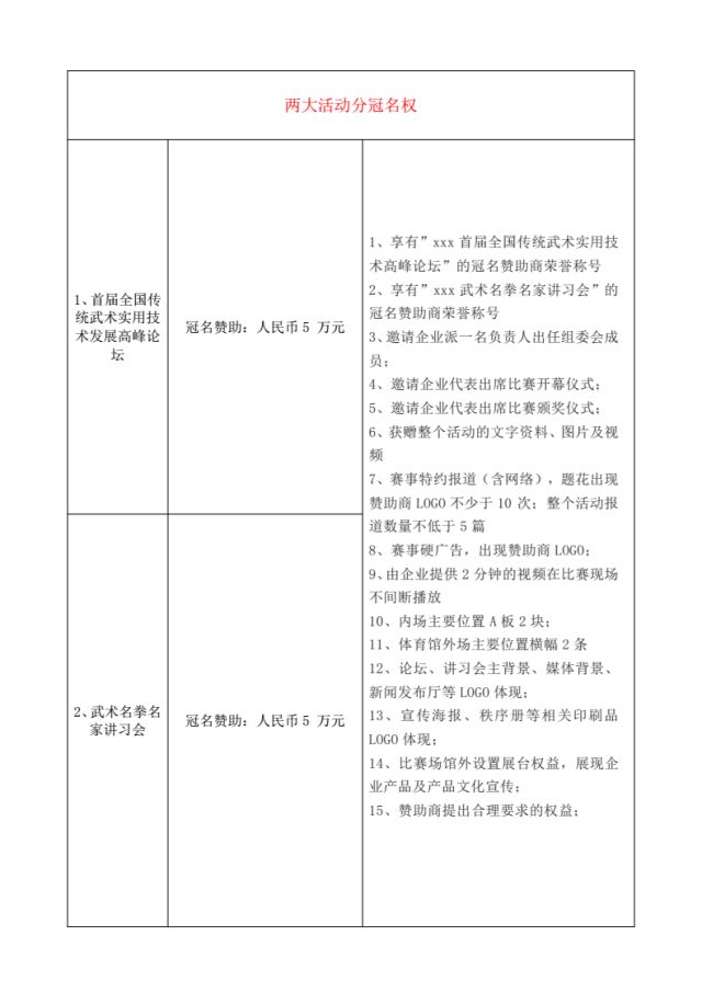 1、首届全国传统武术实用技术发展高峰论坛冠名权