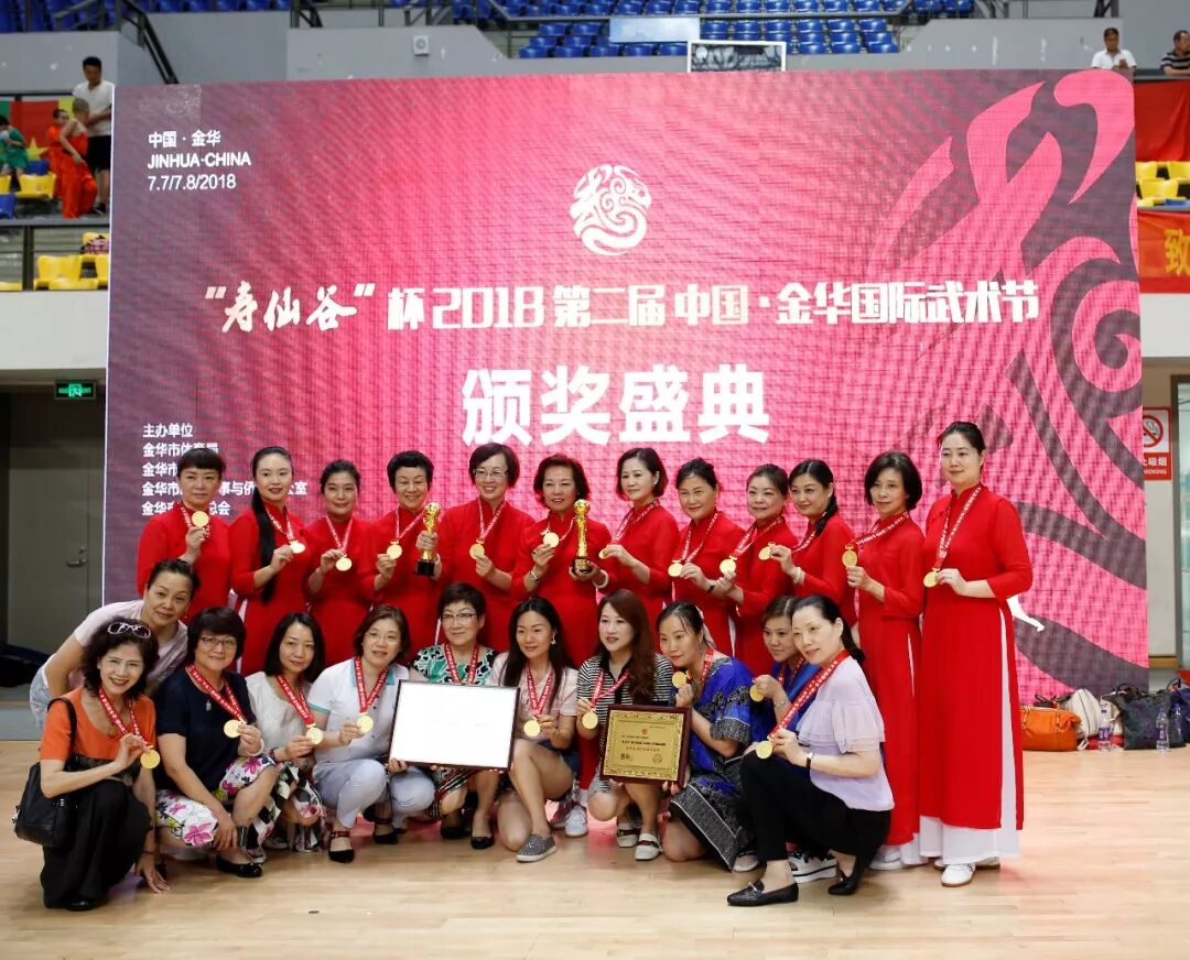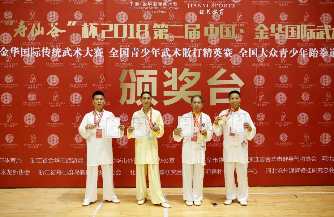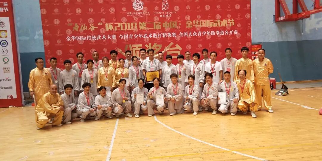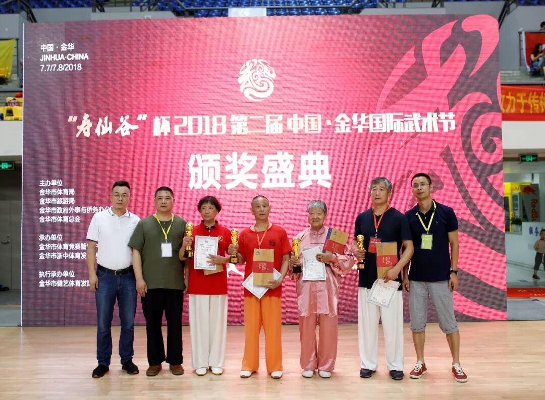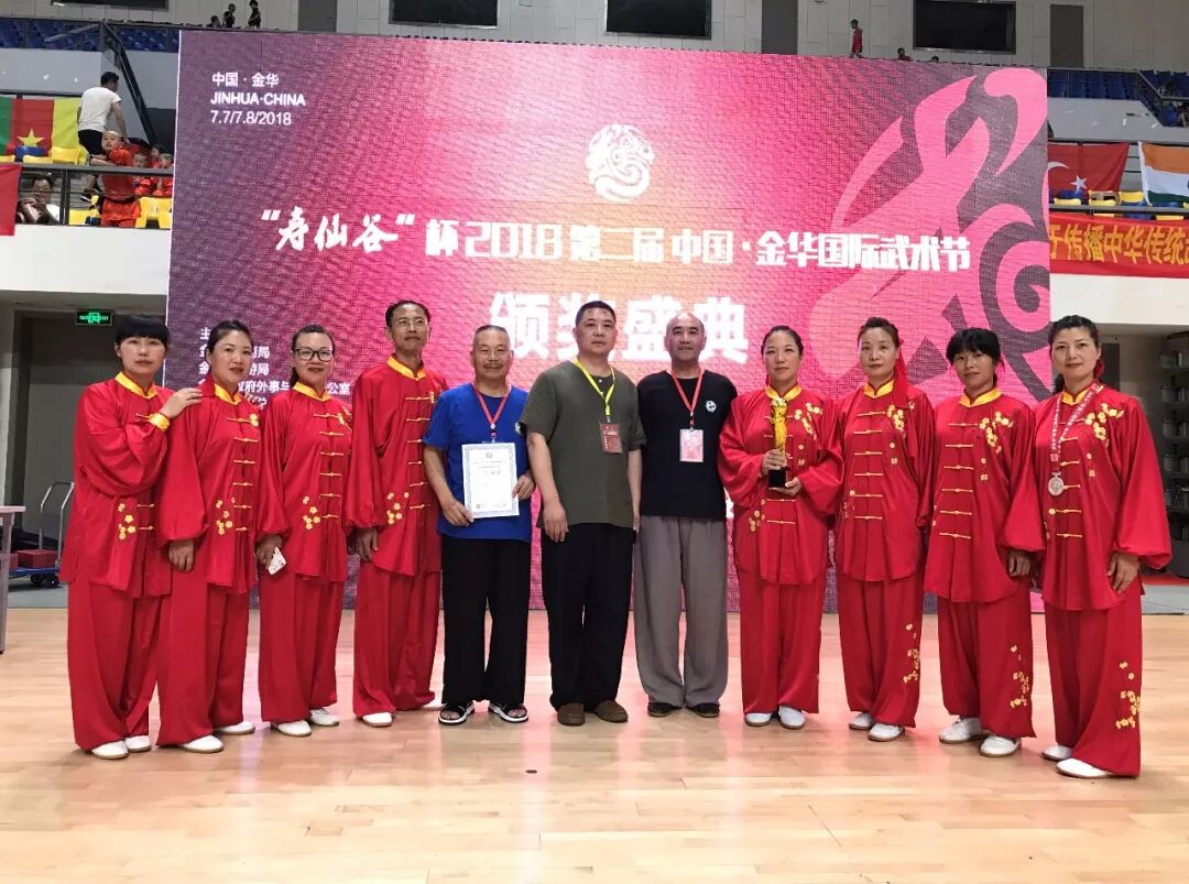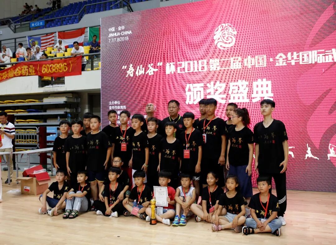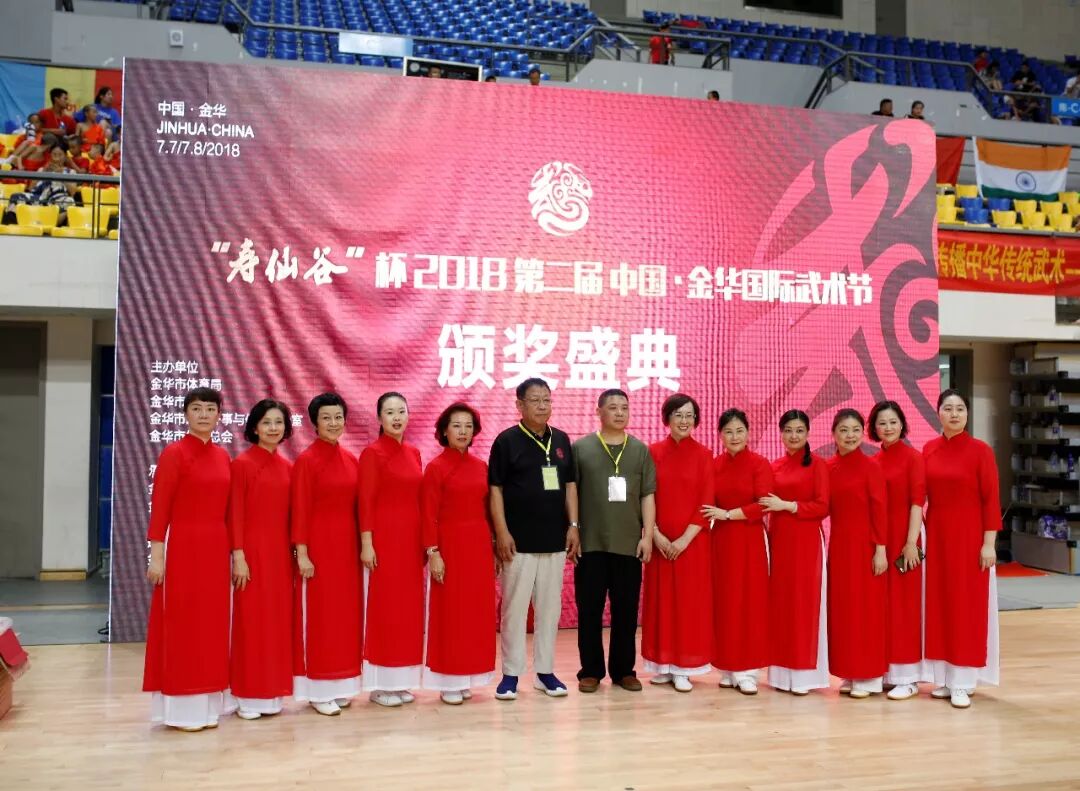 (嘉宾为传统武术总团体获奖队伍颁奖)