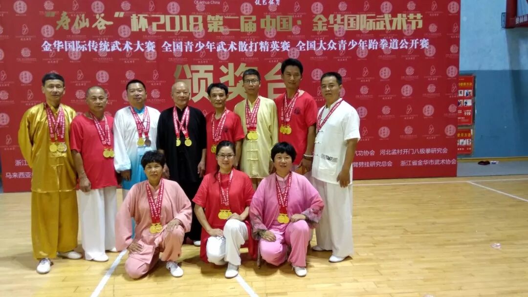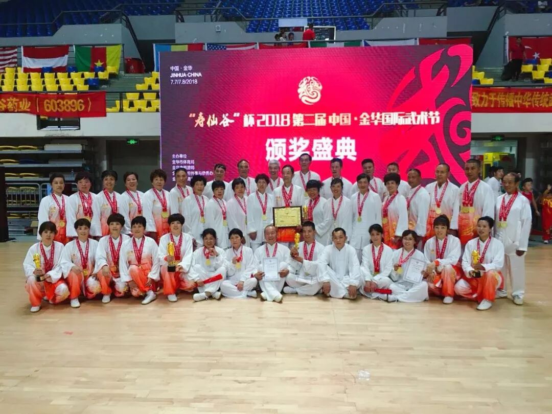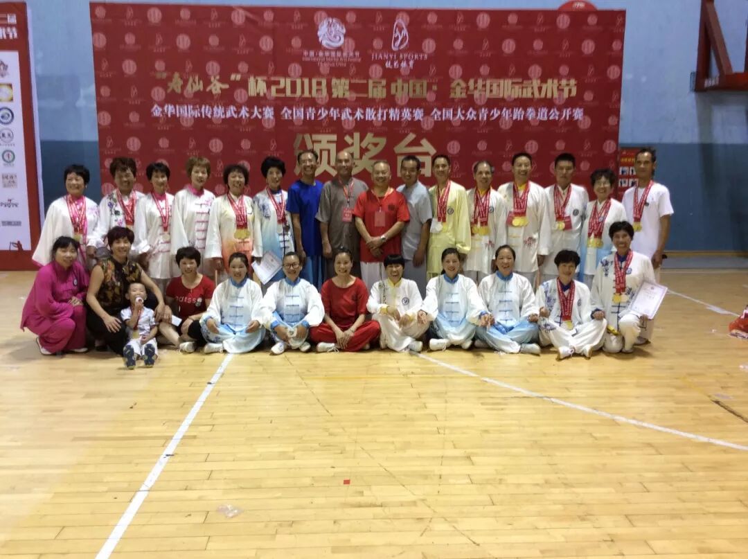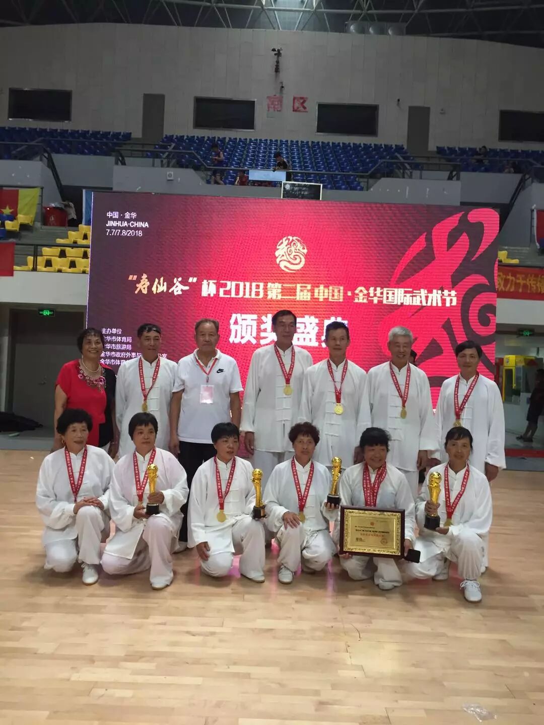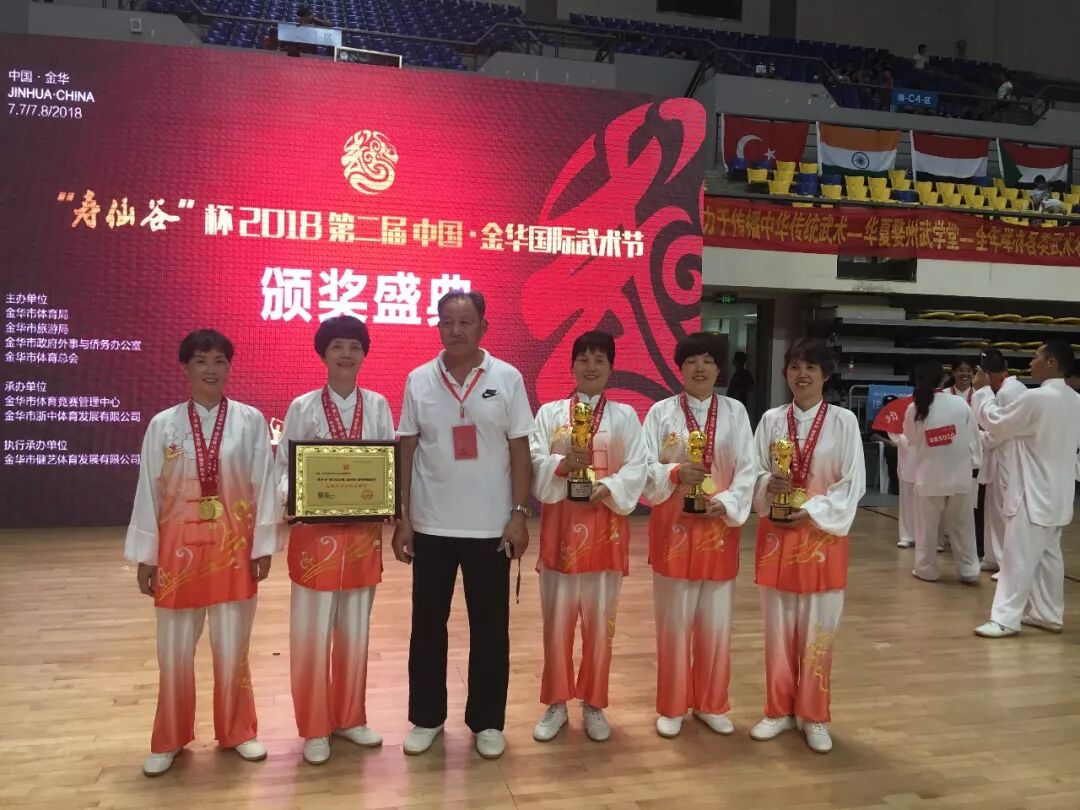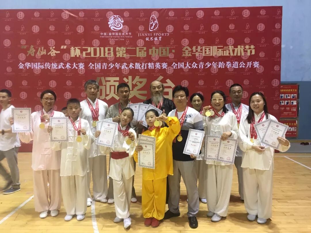 (嘉宾为传统武术总团体获奖队伍颁奖)