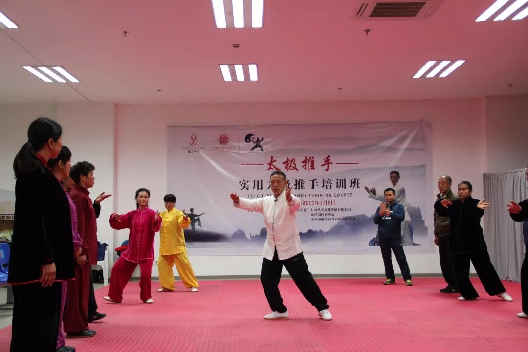 据了解,县武术协会联合金华健艺体育有限公司创办的华夏婺州武学堂自2016年12月21日起举办第一期吴连枝全国八极拳教练员培训班以来,至今已举办八极拳、八卦掌、形意拳、杨式太极拳、太极推手、中华苗刀、擒拿格斗、孙式太极拳、中国式摔跤、42式太极拳剑等二十余次全国性培训班,目前至除西藏外,全国各省市自治区均有武术爱好者前来参加华夏婺州武学堂的传统武术名拳名家培训班,受训人数已达600余人次。武学堂邀请了众多的知名武术家前来开班授课,他们中有著名八极拳大家吴连枝,武术八段、著名武术家擒拿格斗专家赵大元,武术八段、尚派形意拳著名传人李宏,武术七段、北京八卦掌研究会秘书长杨十明,中国式摔跤著名传人王同庆,武术七段、上海体院教授、太极推手规则制定者谢业雷,苗刀正宗传人郭桂德,著名孙式太极拳传人雷世泰,著名杨式太极拳传人傅清泉等国内外知名的武术大家。据中国武术七段、县政协委员、县武术协会主席何建一介绍,婺州武学堂依托我县优质的旅游资源,把武术与旅游相结合,国内外的武术爱好者既学到了心目的武术拳种,也在武义天然的环境中放松心情、体验武义的优美山水。接下来将于9月21--25日、9月30日--10月9日分别在俞源、牛头山举办中国武术八段、形意拳名家邸国勇形意拳培训班,中国武术八段、原中国人民公安大学警体教研室主任赵大元的擒拿格斗培训班,以及于9月份推出的武术七段、吴式太极拳传人何建一的传统吴式太极拳培训班,目前名额均已报满。何建一介绍说,婺州武学堂应广大武术爱好者的要求,基本上每月推出一个培训班,之后还将于12月中旬在武义举办华夏婺州武学堂二周年庆,届时会推出6个培训班同时开班教学,预计会有来自全国各地近200名武术爱好者前来武义学习训练旅游。