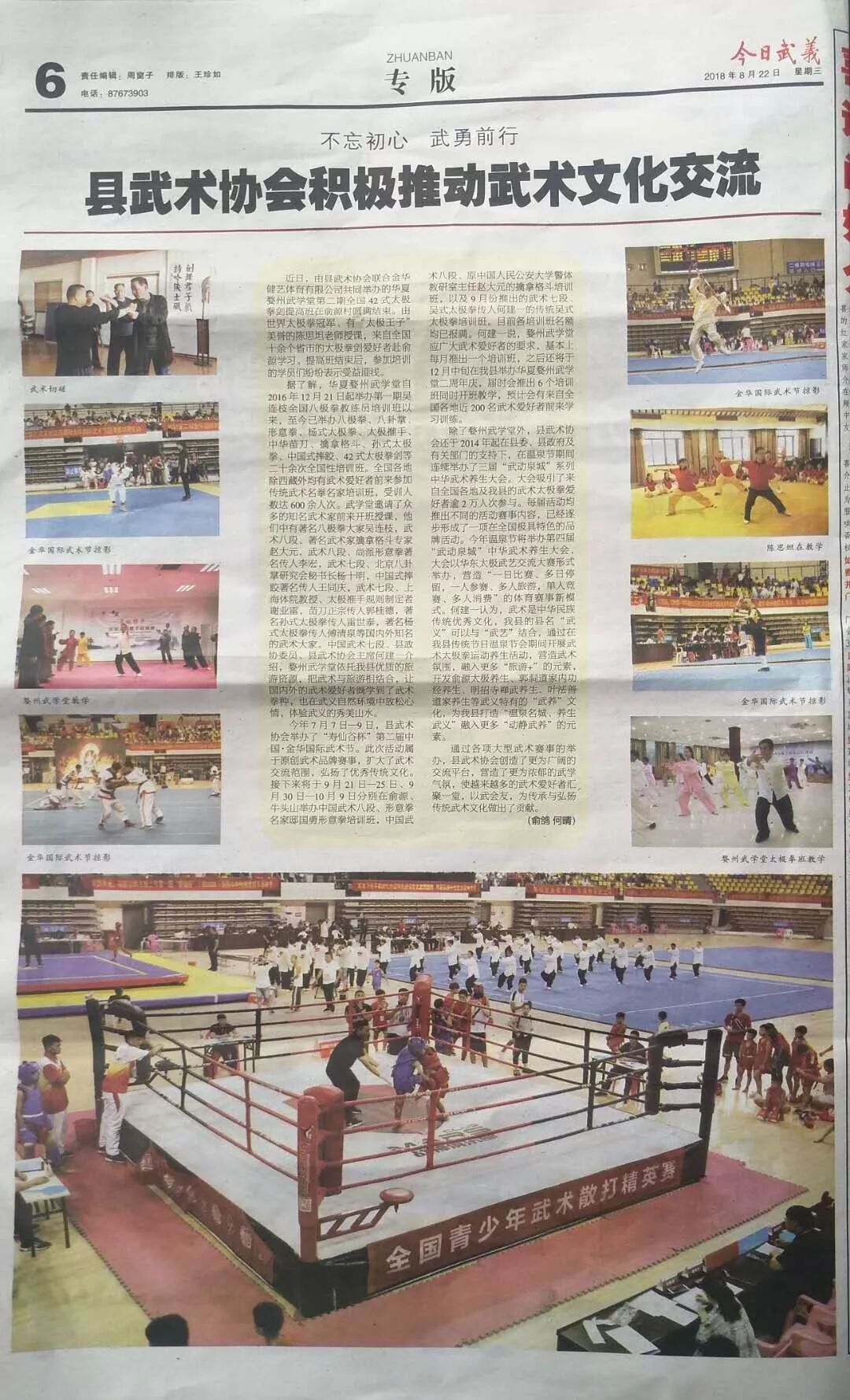今日武义8月22日专版报道我会积极推动武术文化交流