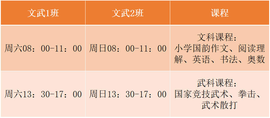 竞技武术课程安排