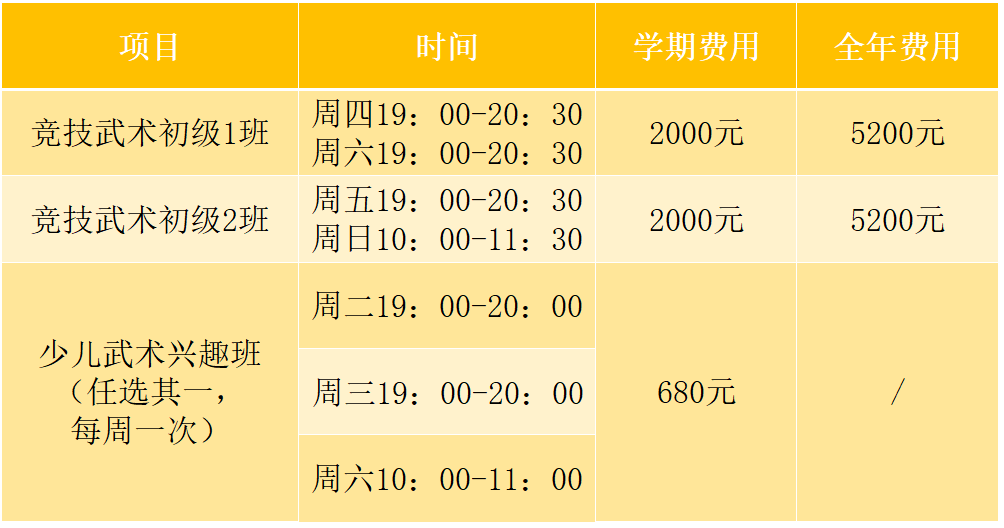 5.报名即送武术训练服一套、训练鞋一双;