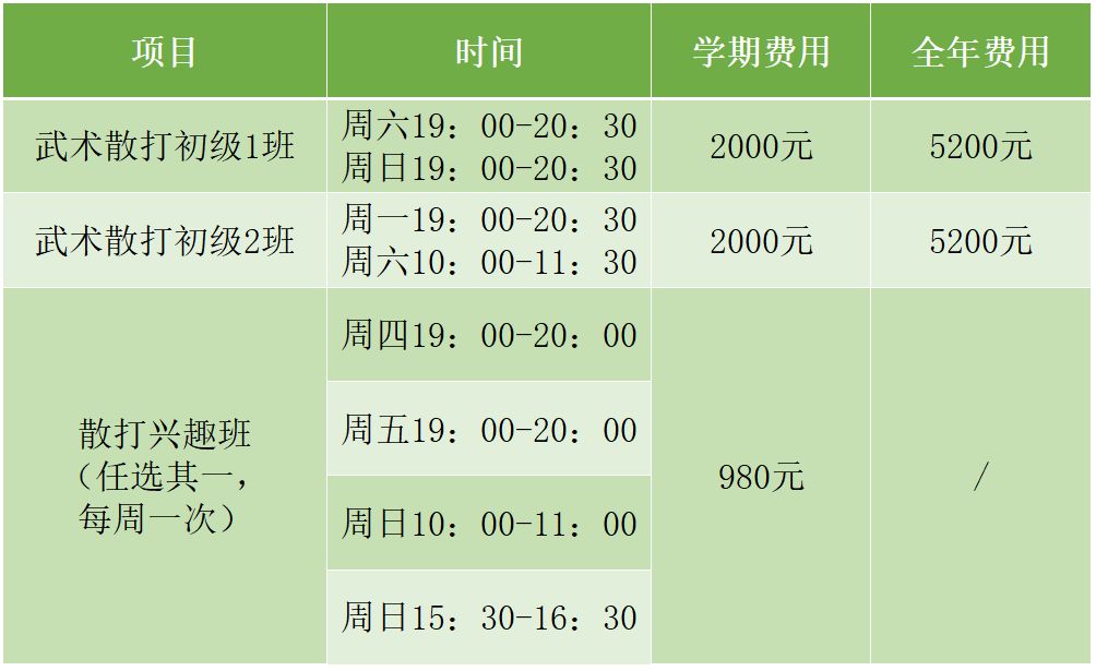 武术散打课程安排
