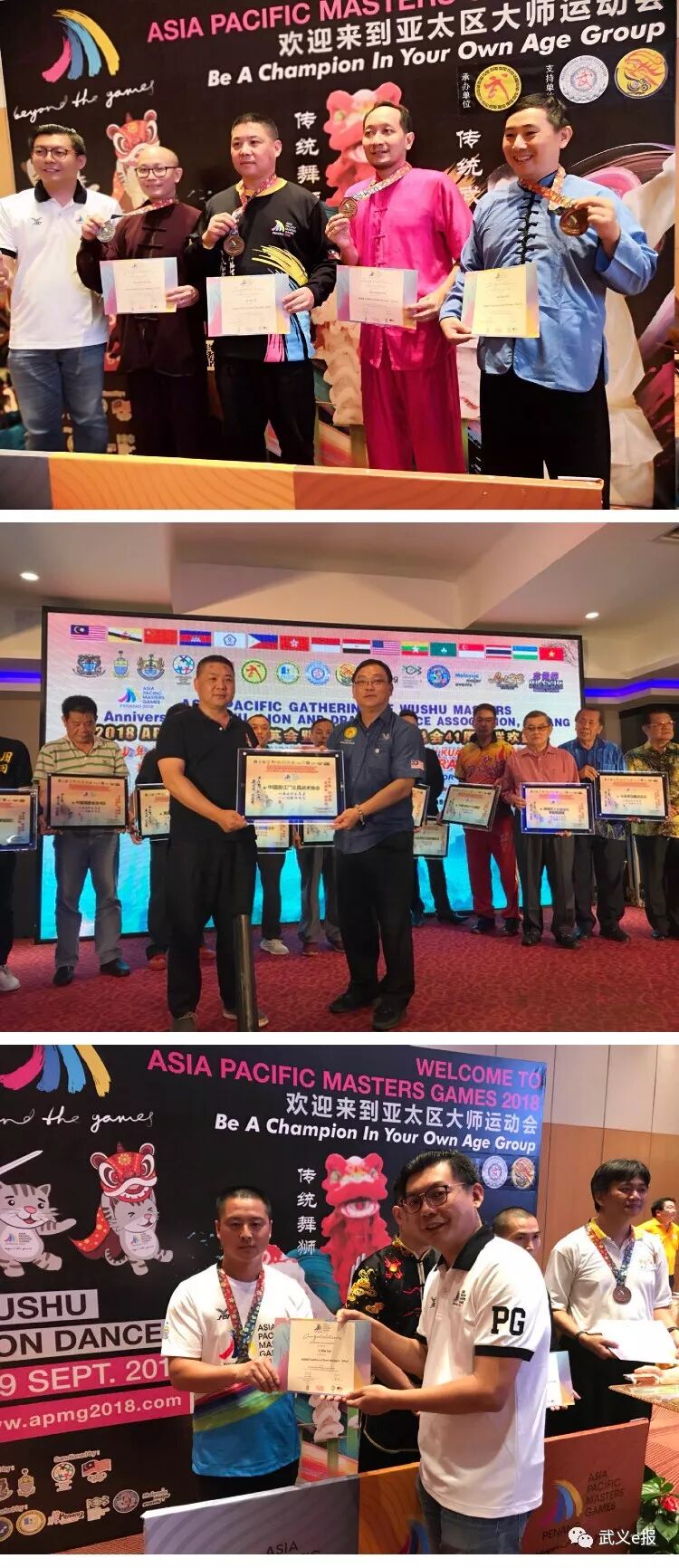 9月7日至9日,首届亚太地区大师运动会武术比赛在马来西亚槟城举行。亚太地区大师运动会由国际世界大师运动会协会主办,国际奥委会认证,面向亚洲地区和太平洋沿岸地区年龄在30岁或以上的退役运动员、业余运动爱好者开放的区域性综合运动会,是亚太地区规模最大的比赛,设置包括武术在内的23个竞赛项目。