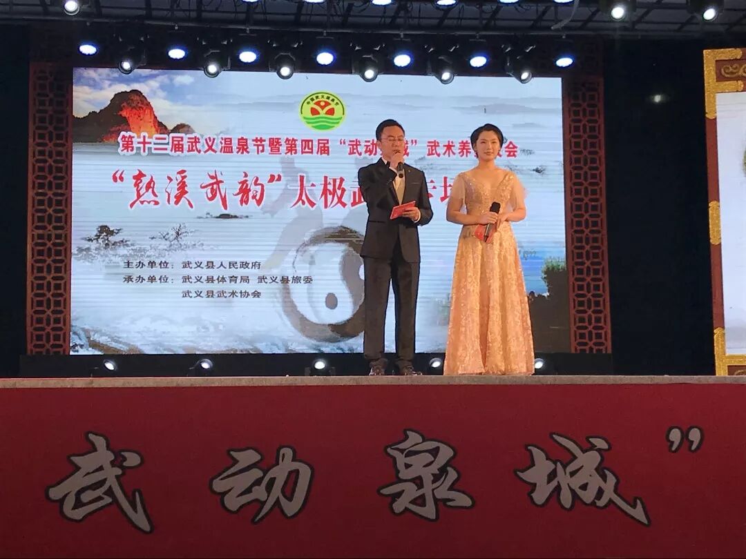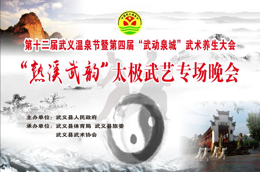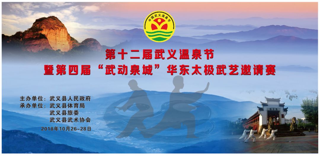 2018年10月26-28日,第十二届武义温泉节暨第四届“武动泉城”武术养生大会在有“温泉名城、养生武义”“全球绿色城市”美誉的武义县城成功举办。本次大会由武义县人民政府主办、武义县体育局、武义县旅委、武义县武术协会共同承办。大会有两个主要活动内容,一是华东太极武艺邀请赛,二是“熟溪武韵”太极武艺荟萃晚会。