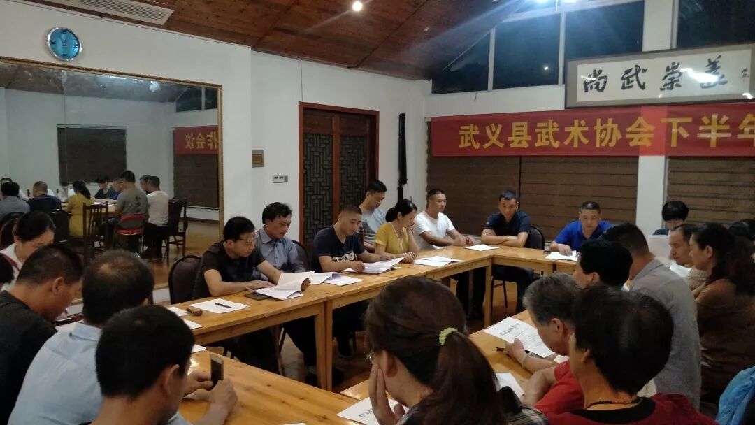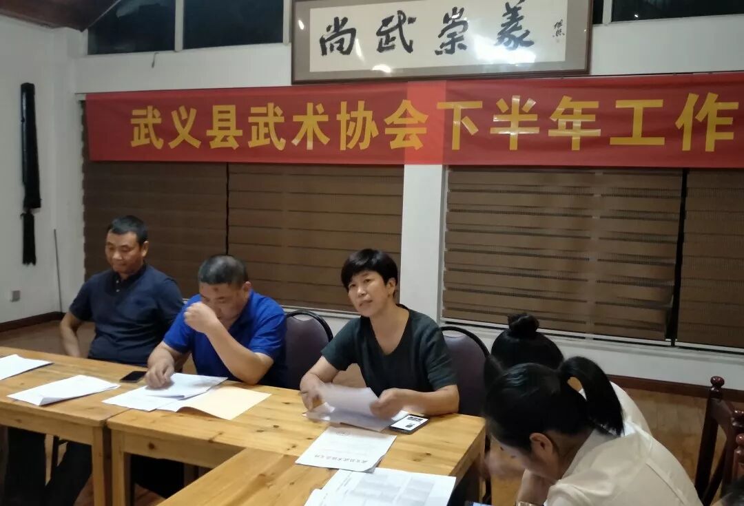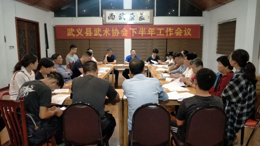 01 第十二届武义温泉节暨第四届“武动泉城”华东太极武艺邀请赛的筹备工作 第四届“武动泉城”华东太极武艺(套路、推手)邀请赛是武义温泉节的主要活动之一。本届主题是“金秋武义养生游、悦享太极武艺美”。将太极拳比赛、太极推手对抗赛,“熟溪武韵”武术太极晚会、武术太极拳名家讲座、指导,景区旅游等活动结合进行。会上何建一主席部署了赛事活动具体工作任务。 02 武义县全民运动会太极拳健身气功比赛工作布置 何建一主席在讲话中要求协会各站点、分会积极组队参加本次比赛,认真做好赛前的训练工作。 03 武义县全民运动会开幕式表演节目讨论 会上讨论了武义县全民运动会开幕式表演节目的编排、训练等方案,经过大家的讨论后,最终确定节目为200人的小学生武术健身操表演。由县武术协会、健艺体育武术训练基地、熟溪小学和东干小学共同组织,并指定有朱俊杰负责。 04 关于健身气功站点管理经费的使用办法 会议还就我县健身气功站点活动经费的使用进行了说明,副秘书长徐珊菲在会上代表健身气功管理委员会对前半年的健身气功工作情况进行了汇报。 05 讨论关于成立武术馆校委员会事宜 9月21日武义县武术进校园启动仪式在熟溪小学隆重举行。期间还对来自全县的体育教师骨干进行了武术健身操的培训,为了更好的整合资源,经协会研究拟成立武术馆校委员会。 会上县青少年武术培训基地朱俊杰,武义一中朱康华、陈波,八极拳俱乐部王界,武义启晨教育负责人徐红等就成立武术馆校委员会的意义、方案等提出了自己的想法和建议,为今后我县的武术教育事业发展献计献策。 最后中国武术七段、金华市健身气功协会主席、武义县武术协会主席何建一进行了总结发言,他对协会下半年的全县武术工作提出了具体的要求。 输 会议还就其他有关事项进行了讨论