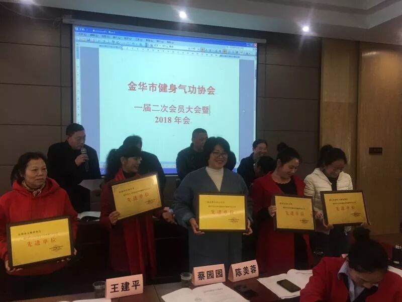 下午在金华市健身气功协会一届二次会员大会暨2018年会上,协会主席何建一作2018年工作总结和2019年工作计划的报告;永康、兰溪、东阳三个县市区作了先进经验交流;会上还对全市健身气功先进单位、先进健身气功站点、先进工作个人、优秀社会体育指导员进行了表彰。市体育局施爱德副局长在会上作了热情洋溢的讲话,对协会一年来的工作表示了充分的肯定,对协会以后的工作也提出了更高的要求和期望。