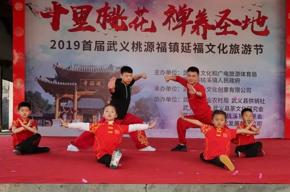 2019年3月30日武义县武术协会、健艺体育青少年武术训练基地受邀参加桃溪延福文化旅游节开幕式表演,由健艺武术教练朱俊杰、刘豪飞带队,与廖凌露、王奕婷、周煦、吴锦坤四位小朋友共同展示了枪术、南拳、剑术和一路长拳等武术表演。