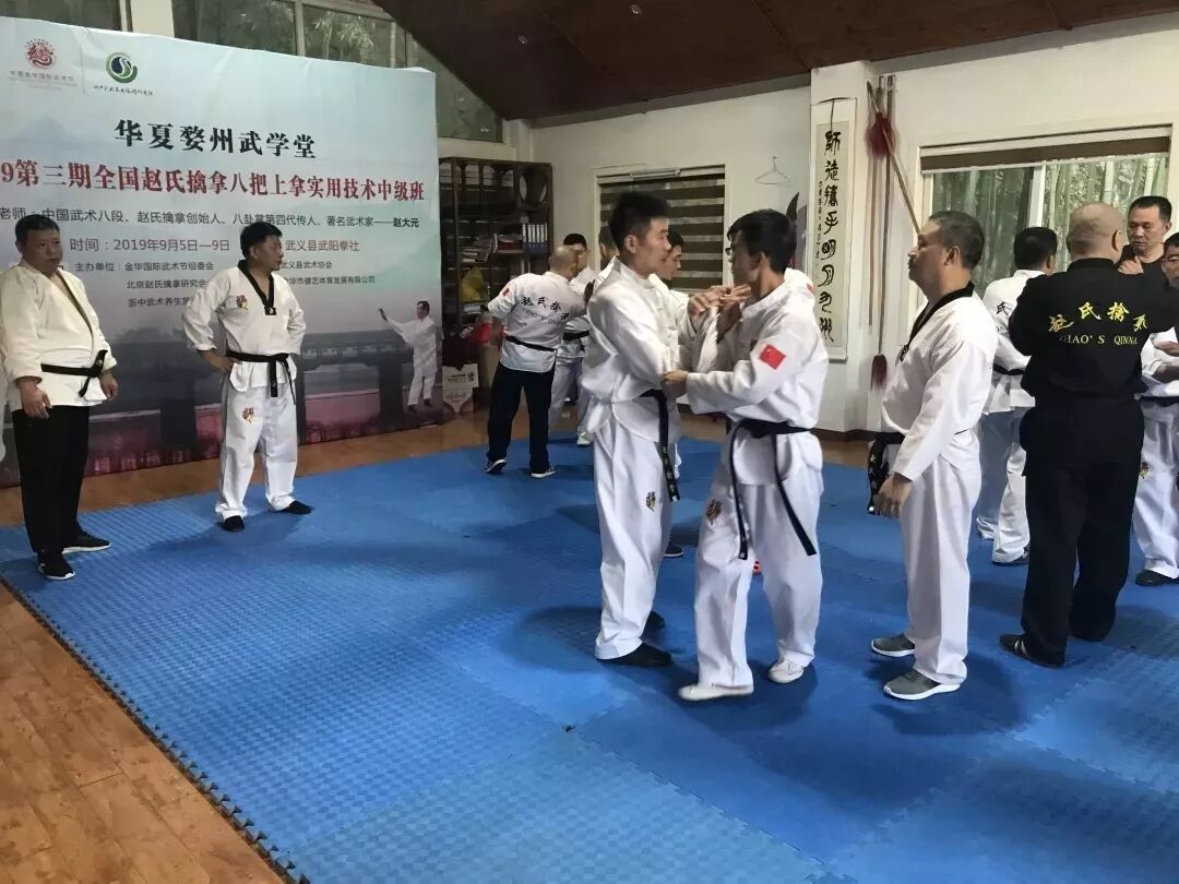 9月5日—9月9日,2019第三期全国赵氏擒拿八把上拿实用技术中级班在浙江省武义县壶山公园武阳拳社举行。来自北京、辽宁、湖南、河南、上海、山东、云南、浙江等国内16名武术爱好者参加学习交流。
