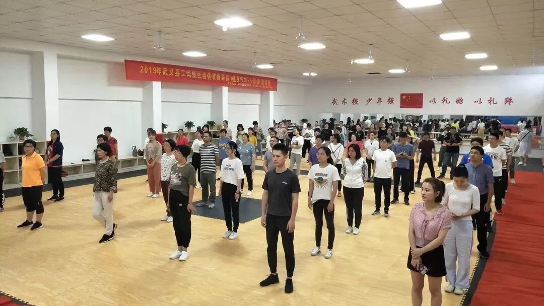 5月24日由武义县文化和广电旅游体育局、武义县总工会主办,武义县武术协会承办,金华市健艺体育发展有限公司协办的2019年武义县工间操(健身气功·八段锦)社会体育指导员培训班在健艺体育青少年武术训练基地圆满举办。