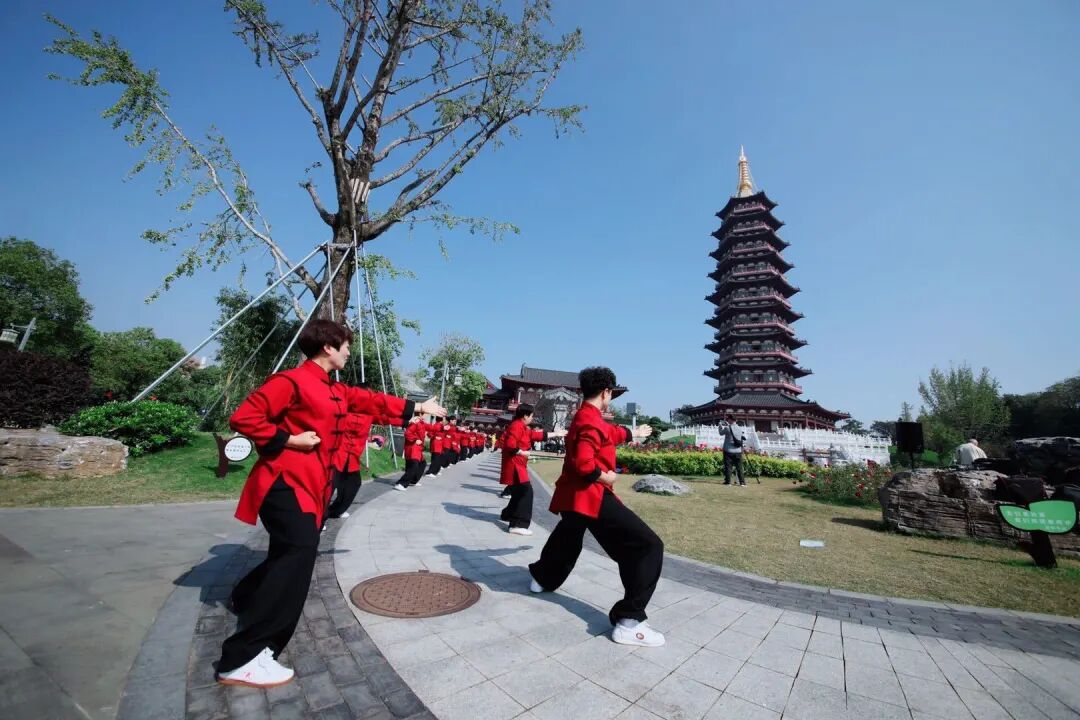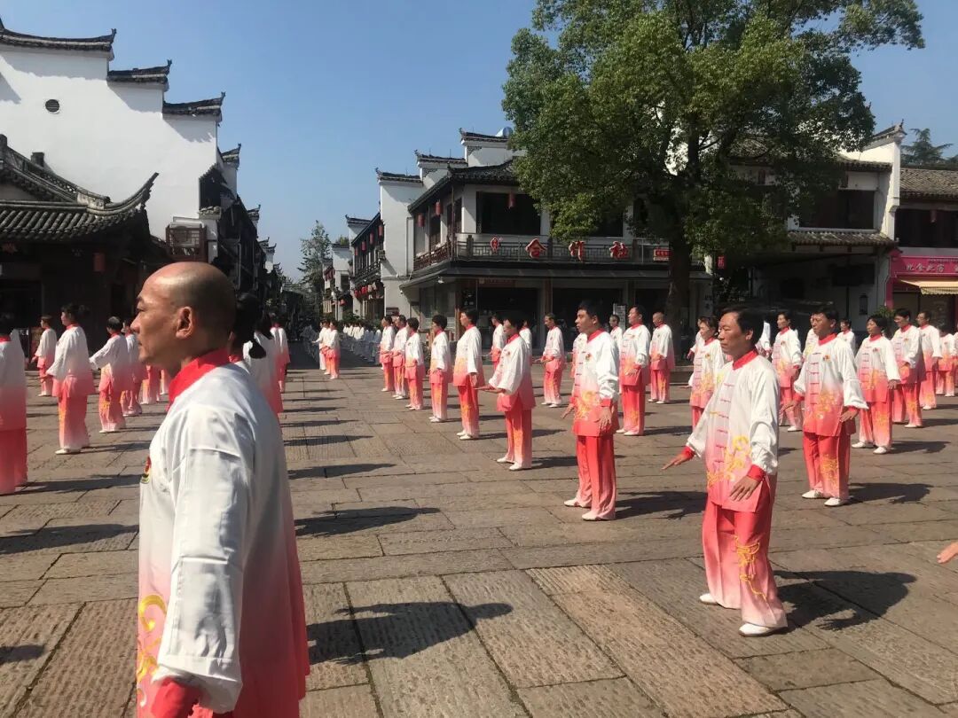 本次全国百城千村健身气功展演有来自各县(市区)近千人参与,他们分别来自市直、婺城、开发区、义乌、东阳、兰溪、永康、浦江、武义、磐安等健身气功站点,设在万佛塔公园、古子城保宁门、八咏街同时进行,展演后在万佛塔公园举办了2020年第三届金华市健身气功站点联赛。