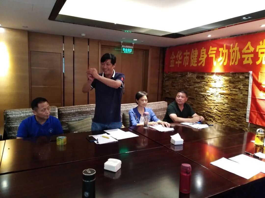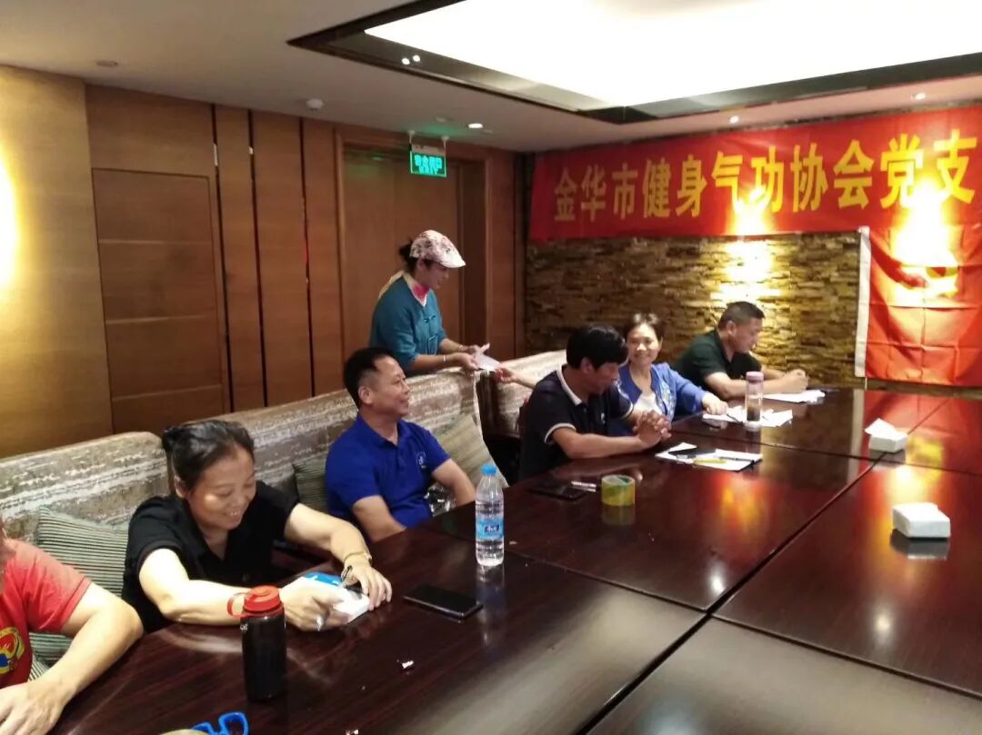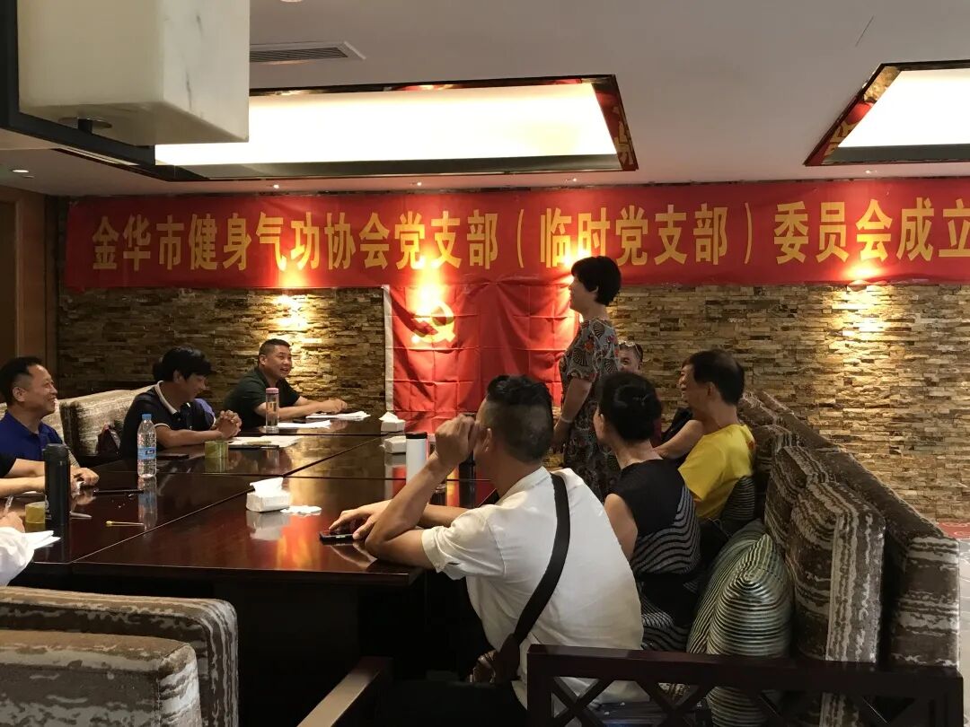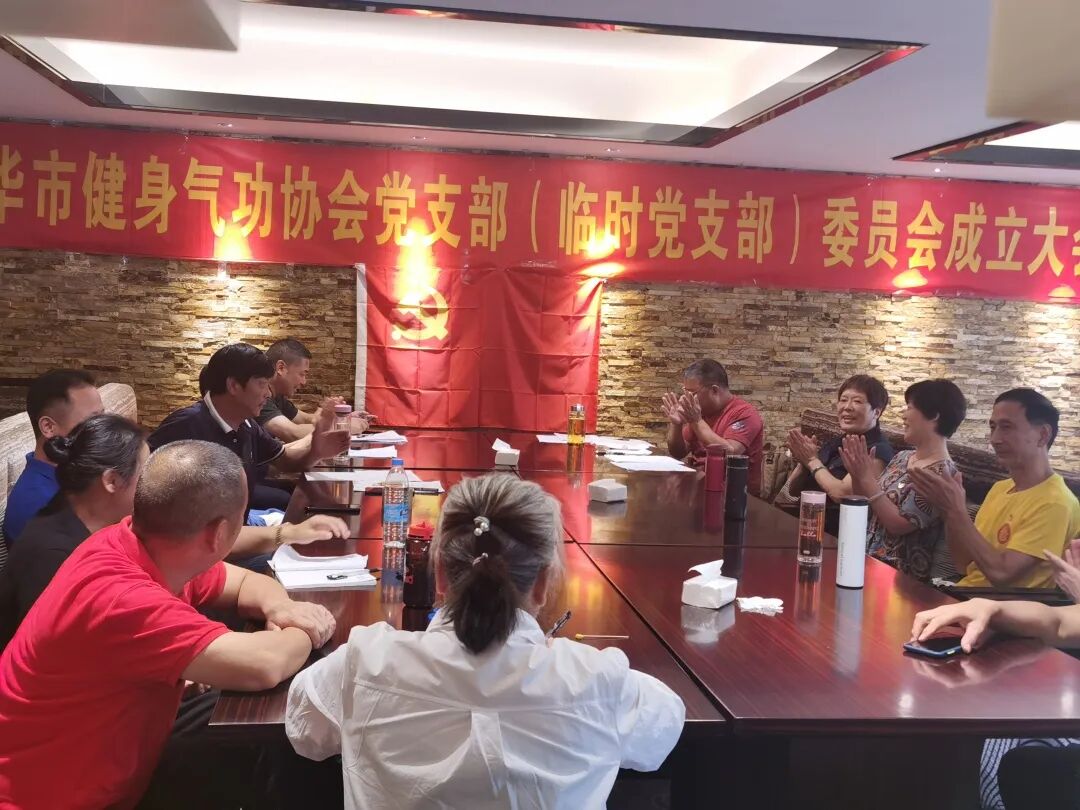 7月30日下午,金华市健身气功协会党支部(临时党支部)委员会在磐安县举行成立大会。来自协会会员的十名党员代表参加,金华市健身气功协会主席何建一,副主席王建平、蔡园园,秘书长戴锡龙,常务副秘书长朱敏,磐安县健身气功协会主席孔樟德等协会领导见证了协会党支部(临时党支部)委员会的成立。