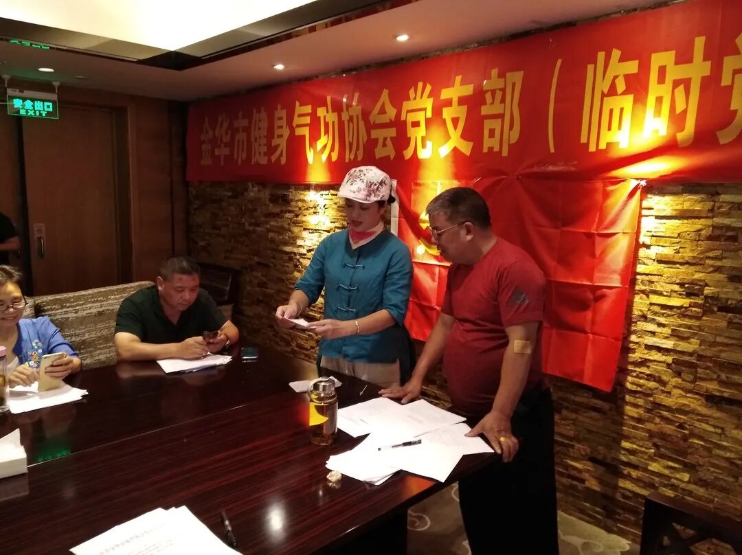 市健身气功协会秘书长戴锡龙主持选举,通过与会的十名党员差额无记名投票选举,林元明、陈丹如、何平等三位同志当选金华市健身气功协会第一届党支部(临时党支部)委员会委员,林元明当选为书记,陈丹如为组织委员,何平为宣传委员。