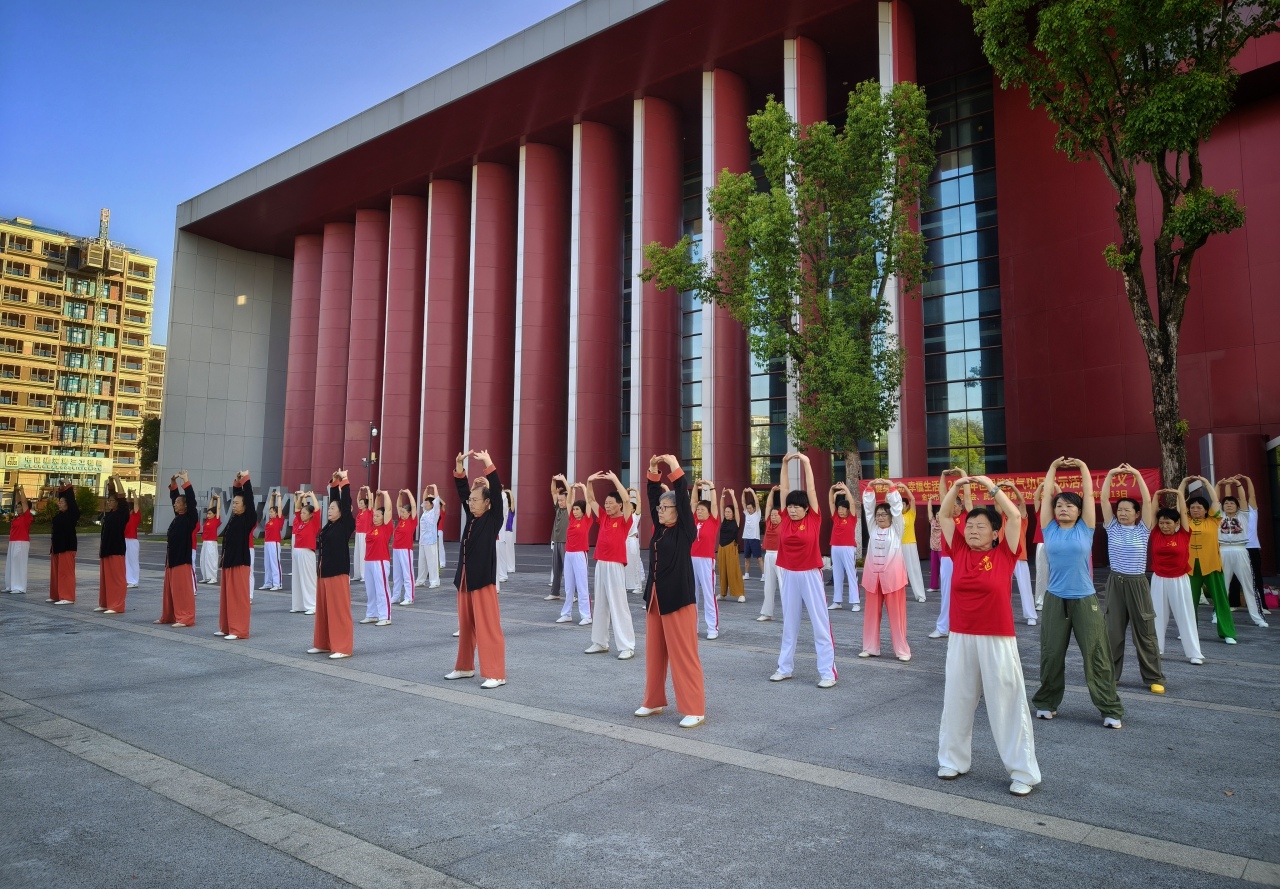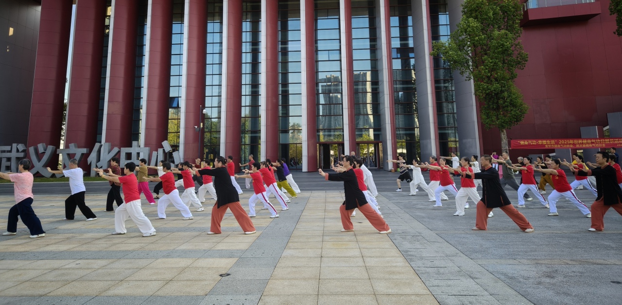 武义县文化中心广场上,来自齐心社区、老年大学、金星社区、秋橙公园、白洋街道等多个健身气功站点的爱好者准时集结。伴随着舒缓的音乐,大家身着统一服饰,精神抖擞地依次展演健身气功·八段锦、马王堆导引术、易筋经等。一招一式,尽显刚柔并济之美,充分展现了健身气功的独特魅力。
